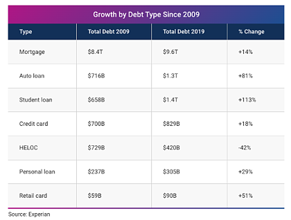 According to Experian, auto loan debt has grown to $1.3T, an increase of 81% over the past ten years.