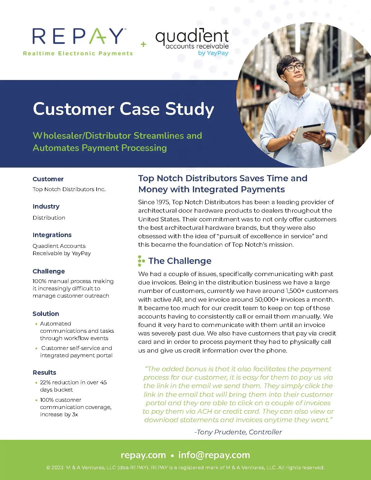 Tony Prudente, Controller at Top Notch Distributors Inc., shares, “We have seen double digital growth in our online payments.” Read More.